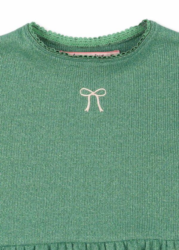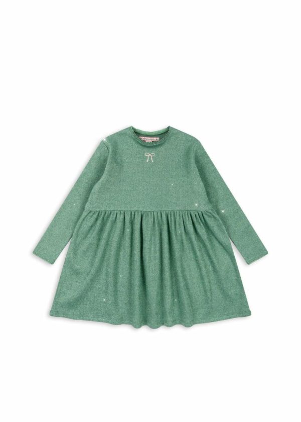 Soft rib dress made in a stretchy cotton fabric. Shiny lurex finish adds sparkle to this perfect everyday piece.