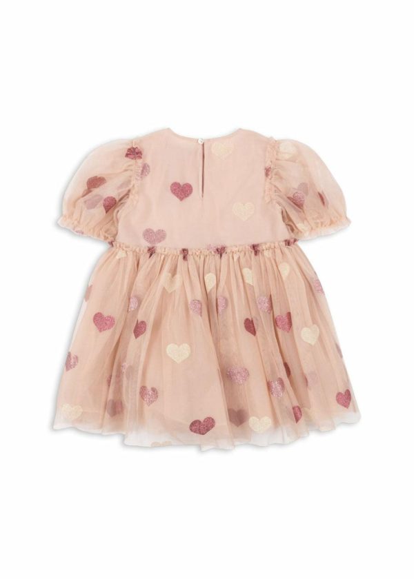 Tullie dress has puff sleeves, a ruched top part with sheer tulle, and a voluminous skirt.