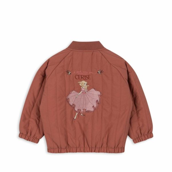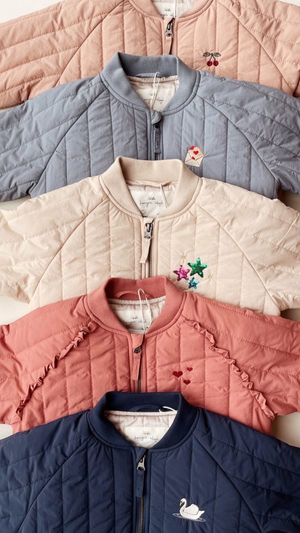 Wind-resistant thermo bomber jacket with frill detailing. Treated with water-repellent coating for all-weather performance.